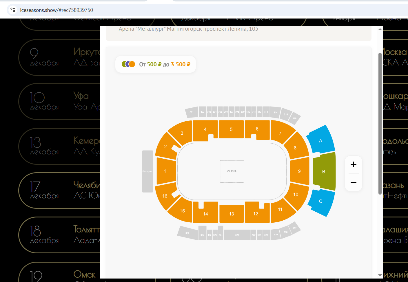 Согласно информации с официального сайта шоу, на оба представления продано менее половины билетов. В наличии остаются как бюджетные места за 500 рублей, так и лучшие за 3500 рублей.