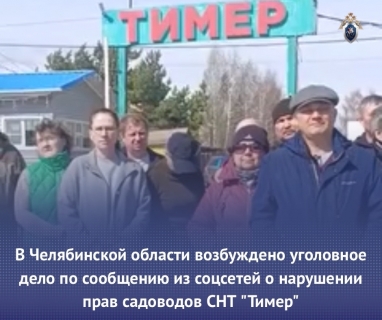 В Челябинской области возбуждено уголовное дело о халатности после сообщения в соцсетях от членов СНТ "Тимер".