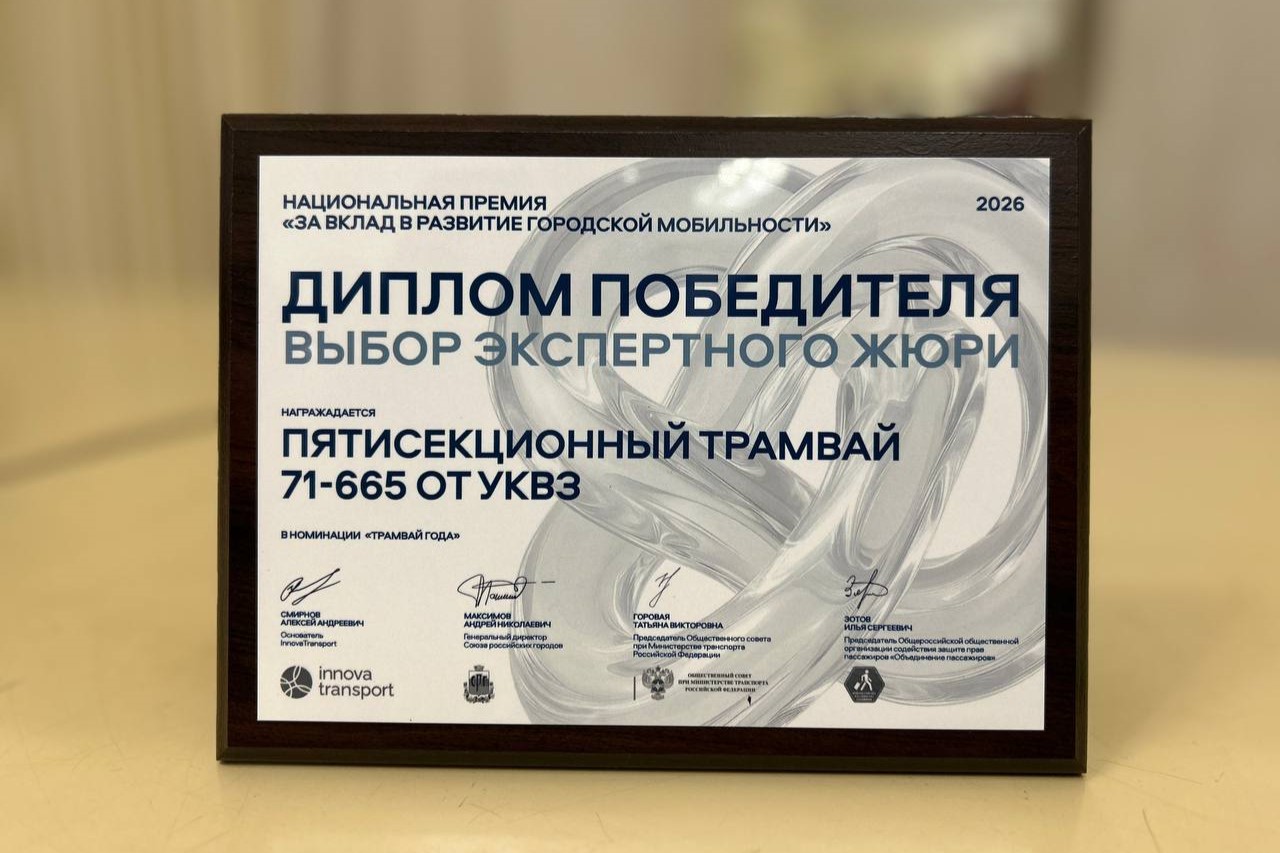 УКВЗ получил награду за лучший трамвай года