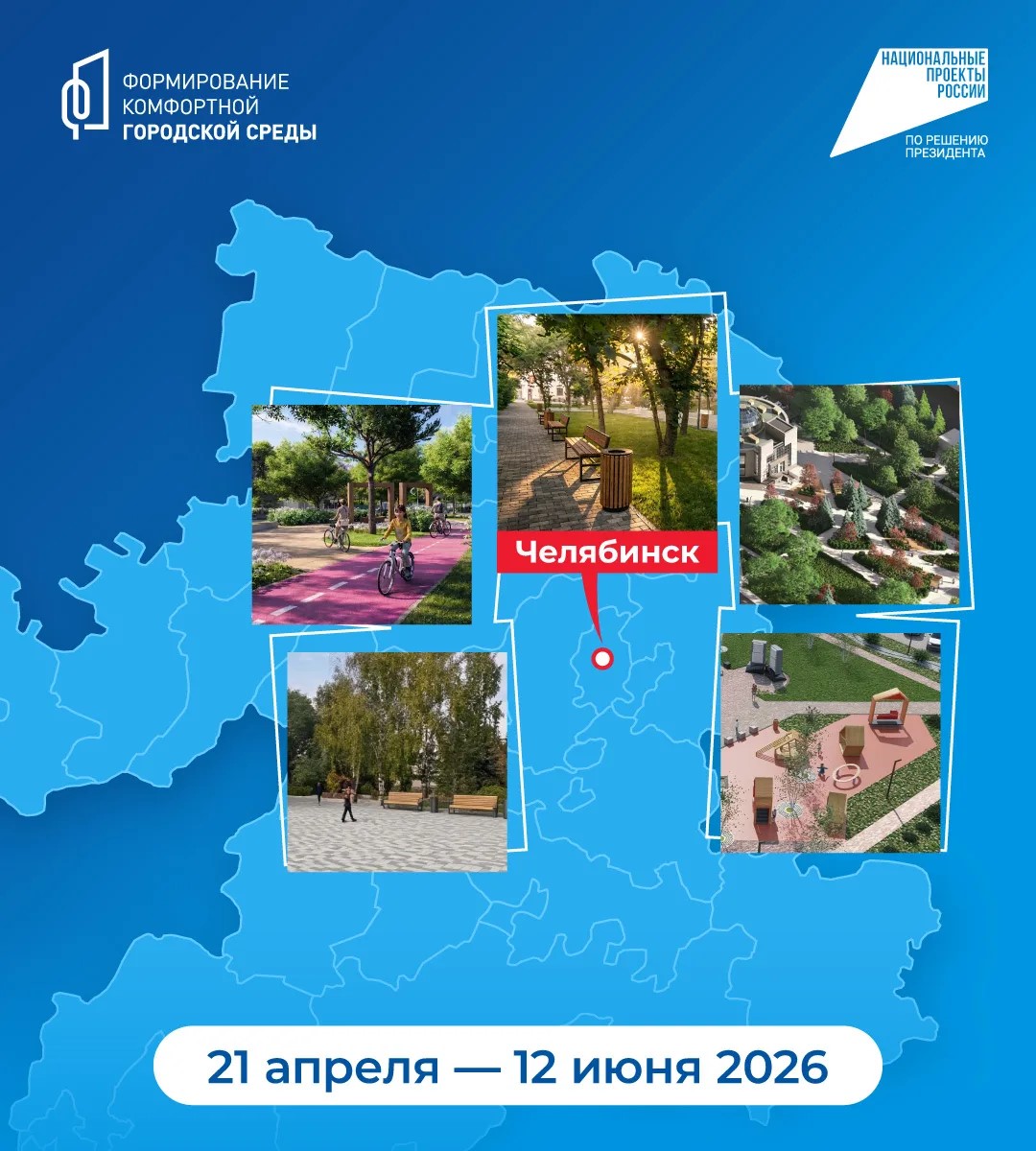 С 21 апреля по 12 июня жители Челябинской области могут выбрать общественные территории, которые будут благоустроены в 2027 году.